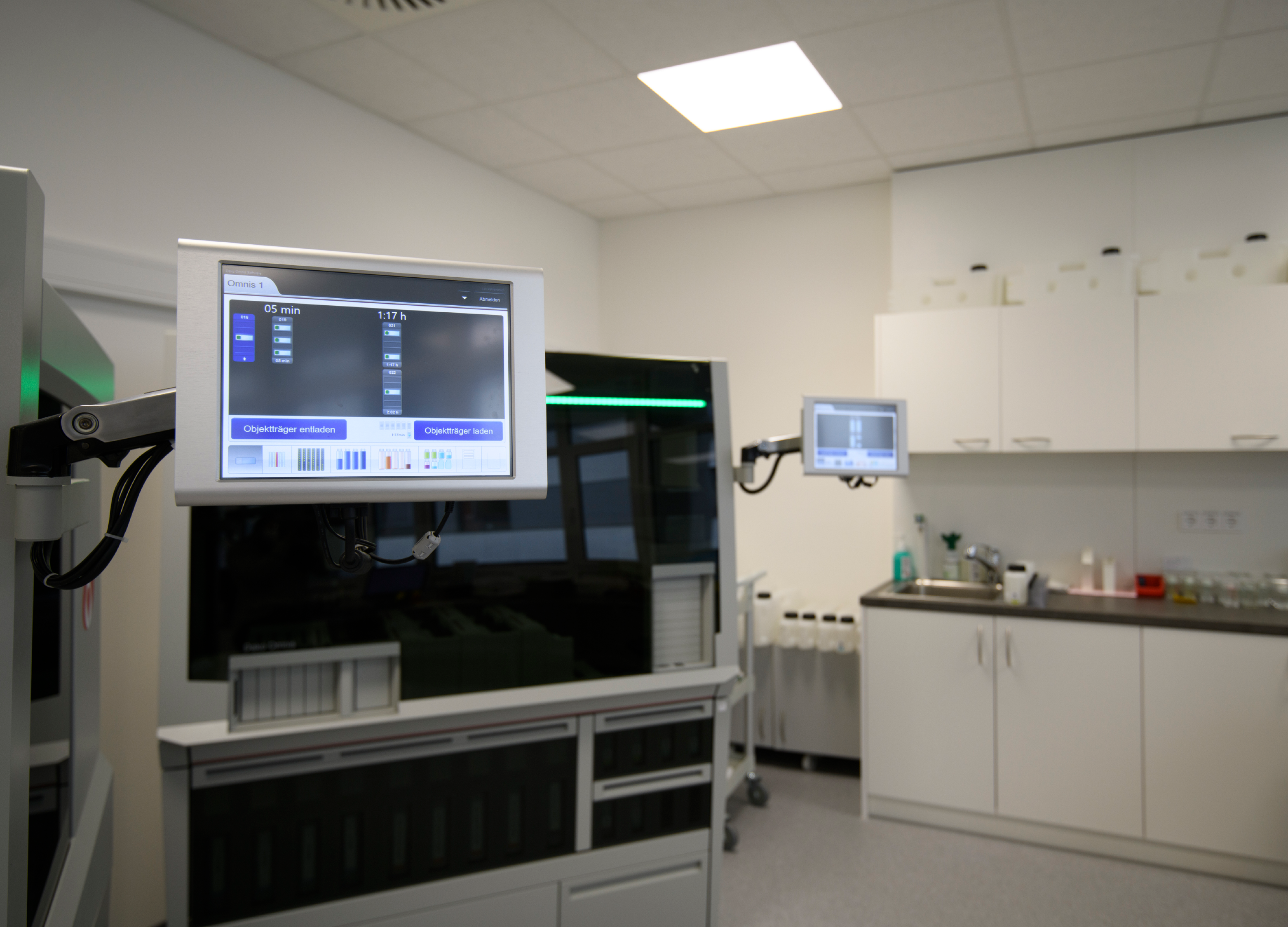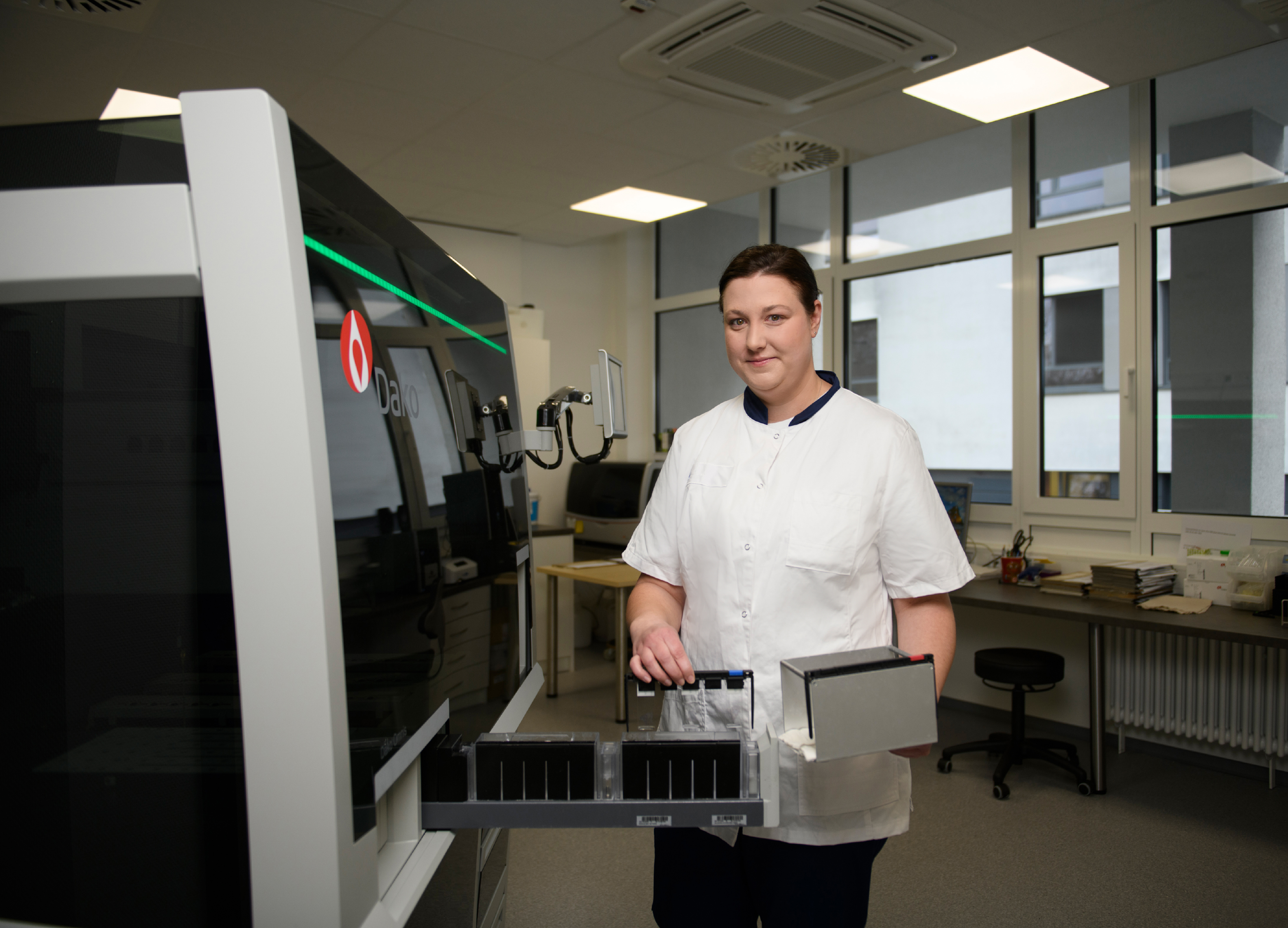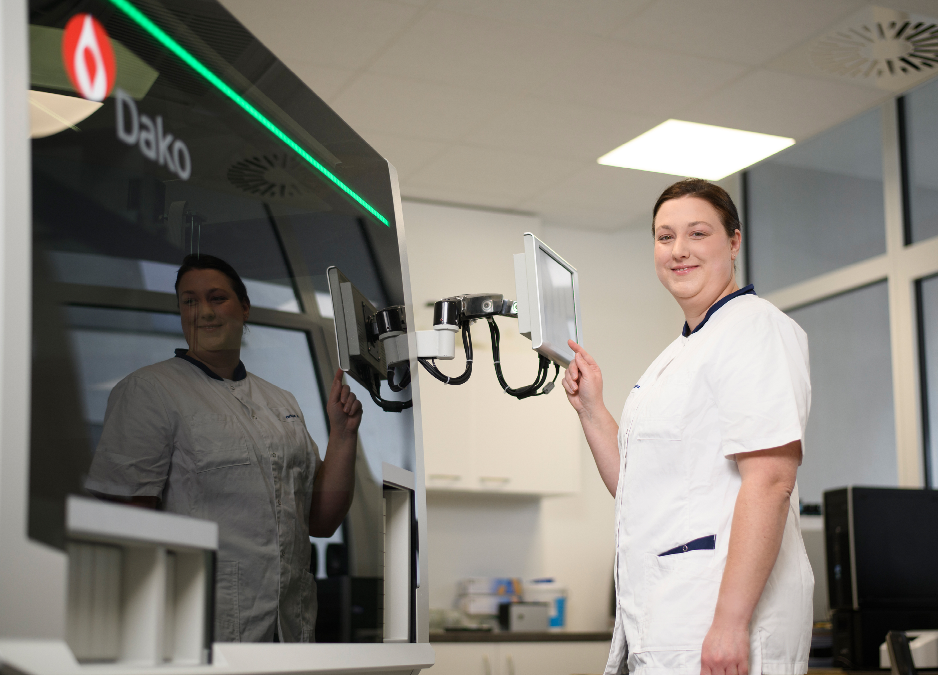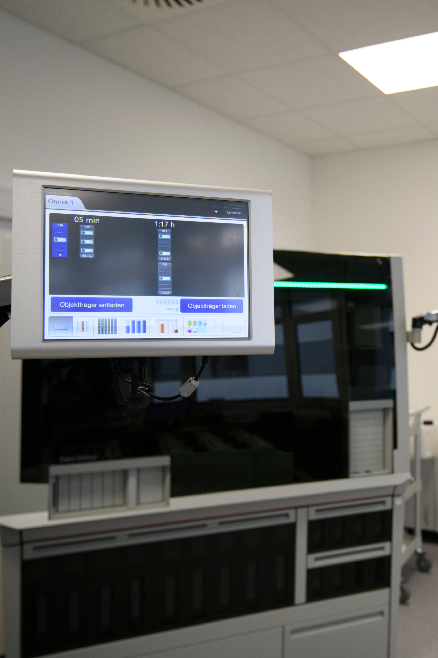 Zur Standardisierung immunhistologischer Färbungen arbeiten wir mit zwei Dako Omnis und dem Dako Autostainer.